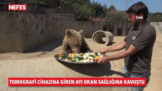 Okan the bear enjoys a salad plate (Picture: Nefes Gazetesi)